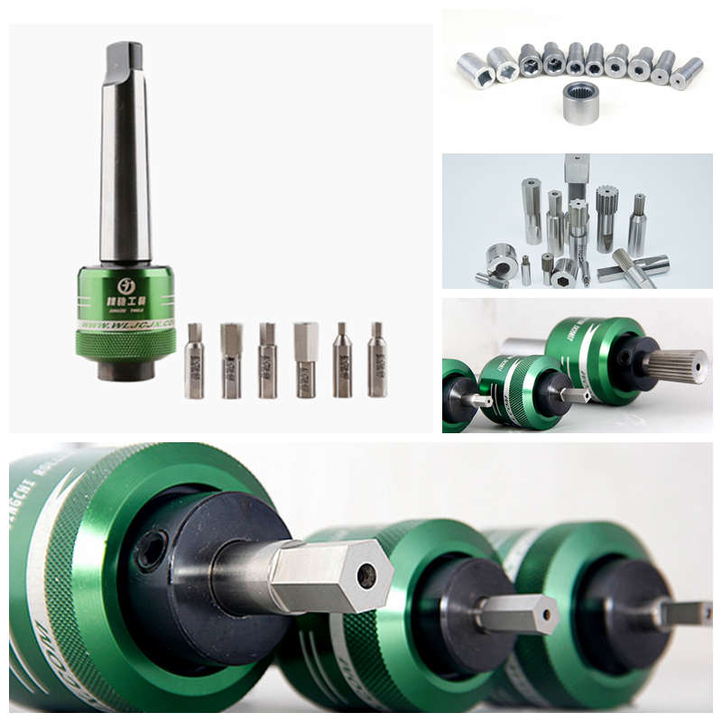 旋轉(zhuǎn)沖削工具是通過刀具的旋轉(zhuǎn)轉(zhuǎn)化為切削的力而進行工作。本公司研制的旋轉(zhuǎn)沖削刀具,是一個操作簡單的異形孔加工刀具,本工具適用一般車床、CNC自動車床、加工中心、鉆床等設備,可加工盲孔,通孔有規(guī)則或不規(guī)則的多邊形,除了加工標準的六角、正方孔,也可定制星形、花鍵等其它特殊形狀。